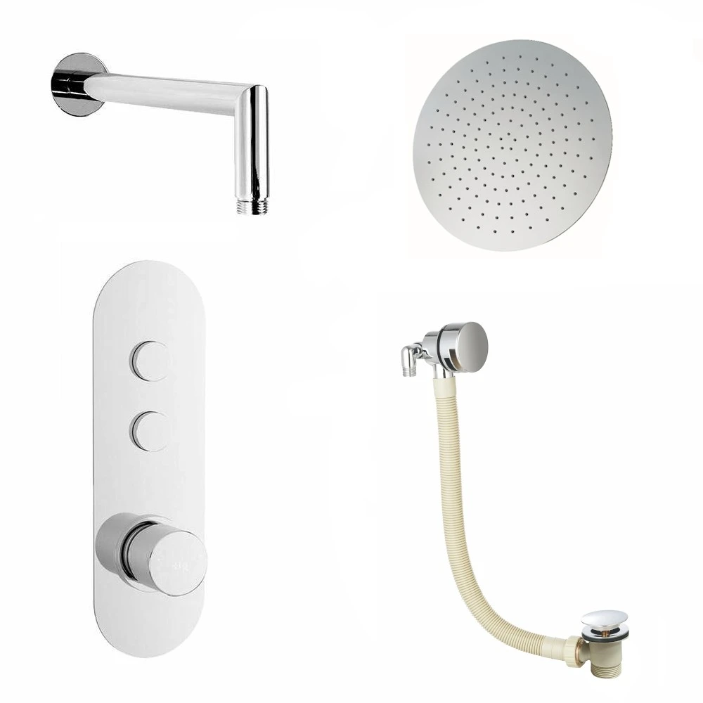 Crafted in the UK from durable brass and boasting an elegant polished chrome finish, the Amy Concealed Thermostatic Shower Valve, Fixed Head & Overflow Bath Filler is the perfect combination of minimalist luxury and modern technology that we all secretly dream of. Use push button technology to control each outlet, and the dial underneath to select your desired temperature; rest assured that thanks to safety valve technology the Amy regulates the water temperature and prevents accidental scalding too.