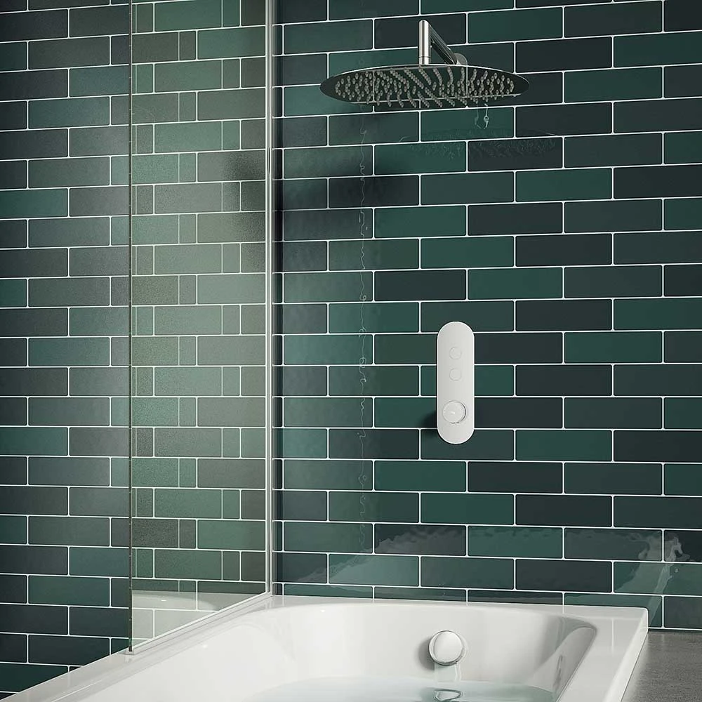 - Space-saving design – no need for bulky bath taps or deck mouted valves