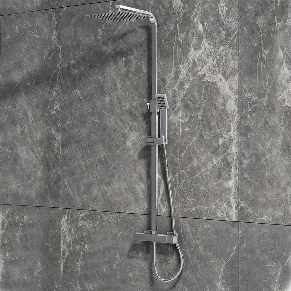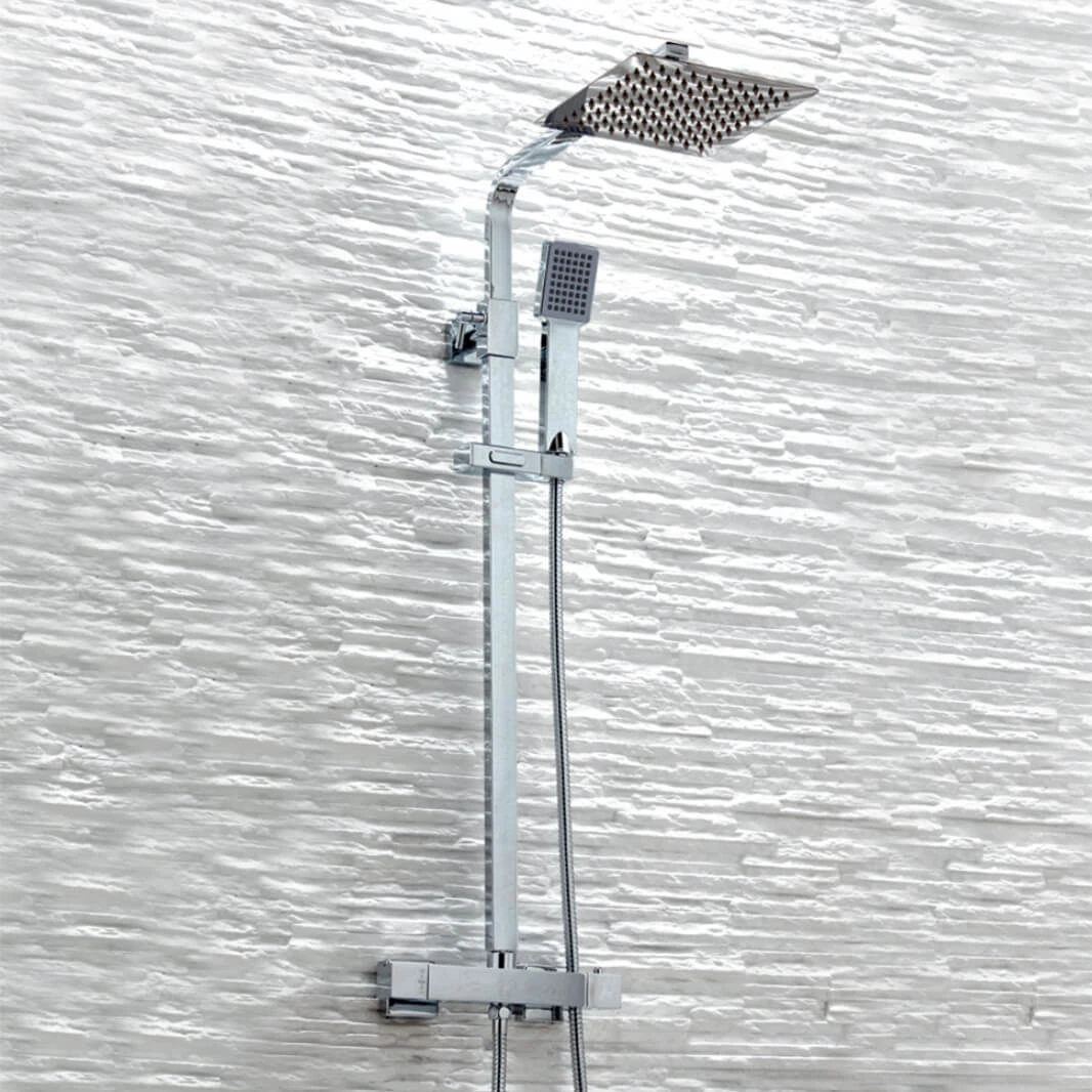 This stylish exposed thermostatic shower kit features a contemporary square overhead shower, as well as a helpful handheld shower head for extra flexibility. Both shower heads feature easy clean rubber jets that makes sure limescale and hard water build-up never clogs up your shower head.