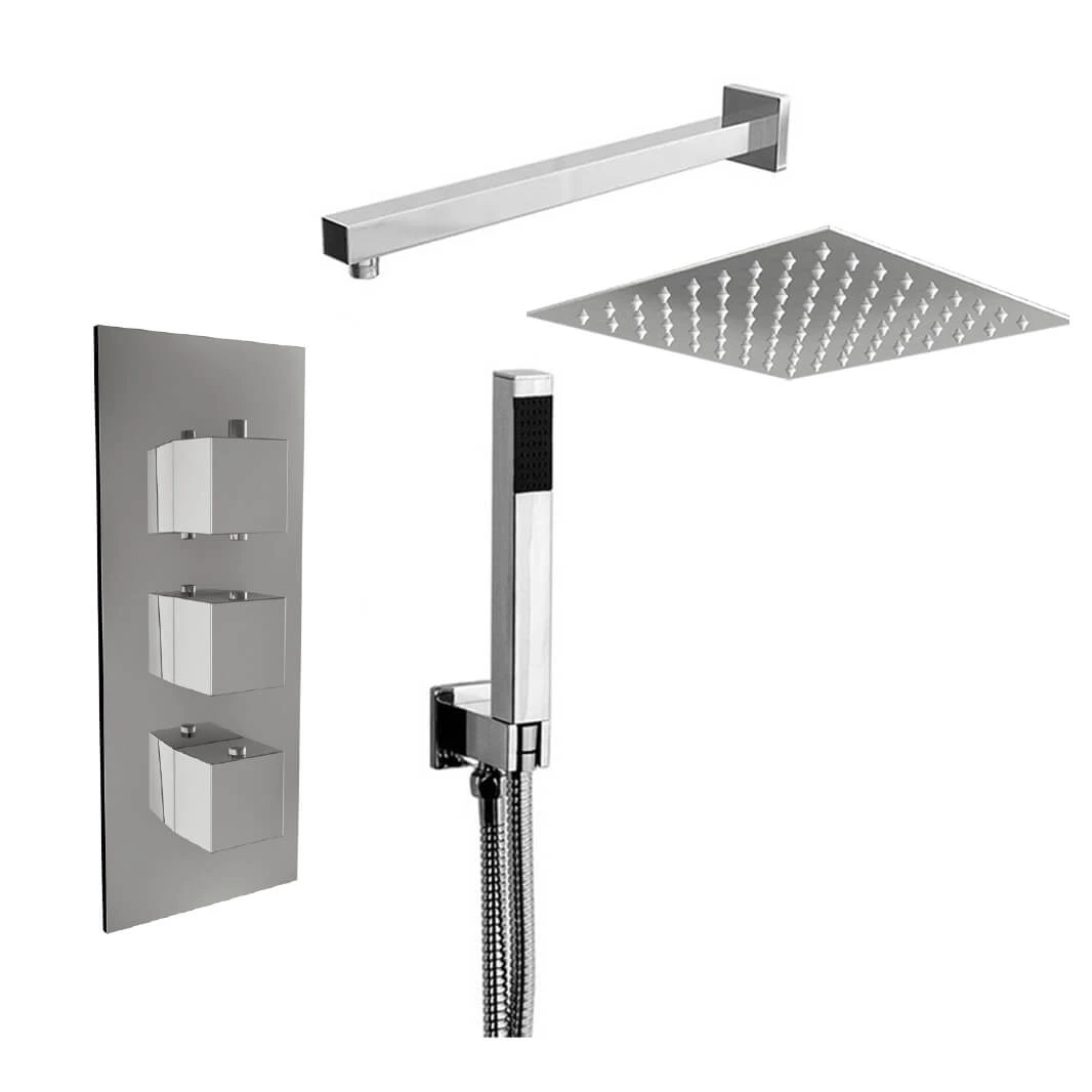 Target those hard to reach areas with the contemporary square handset, and enjoy a luxurious rainfall shower experience day in-day out with the fixed shower head. Easy clean nozzles mean maintenance is stress-free, and that polished chrome finish keeps your bathroom looking stylish. If you’re after some extra reassurance, perhaps those lengthy manufacturer’s guarantees will tempt you?