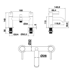 Hudson Reed Tec Crosshead Deck Mounted Bath Shower Mixer With Handser Kit