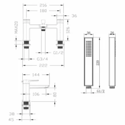 Harbour Status Chrome 3 Hole Bath Mixer With Pull Out Handset