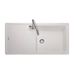 Thomas Denby Jarla 1 Bowl Gloss White Ceramic Kitchen Sink With Reversible Drainer – 1000 X 500mm