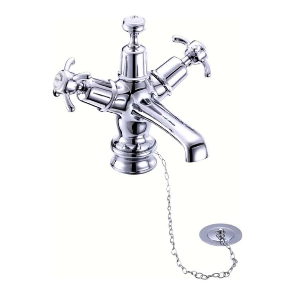 How better to add a slice of opulence and lavishness to your traditional bathroom than with the Anglesey Regent Basin Mixer from Burlington. It features four spoke Anglesey tap heads that cover the internal ceramic disc cartridges; technology that allows you to control the flow of water with just a quarter turn of the handle. Crafted with the finest solid brass and finished in polished chrome, this mixer has white ceramic accents on the central indice and tap heads to fully complete the traditional look. Suitable for both low and high pressure systems, it’s also supplied with a Neopearl flow straightener and aerator to ensure a steady, consistent stream every time you use it.