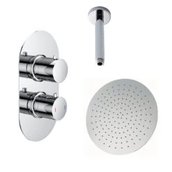 - Exposed thermostatic shower valve, fixed shower head and ceramic handset