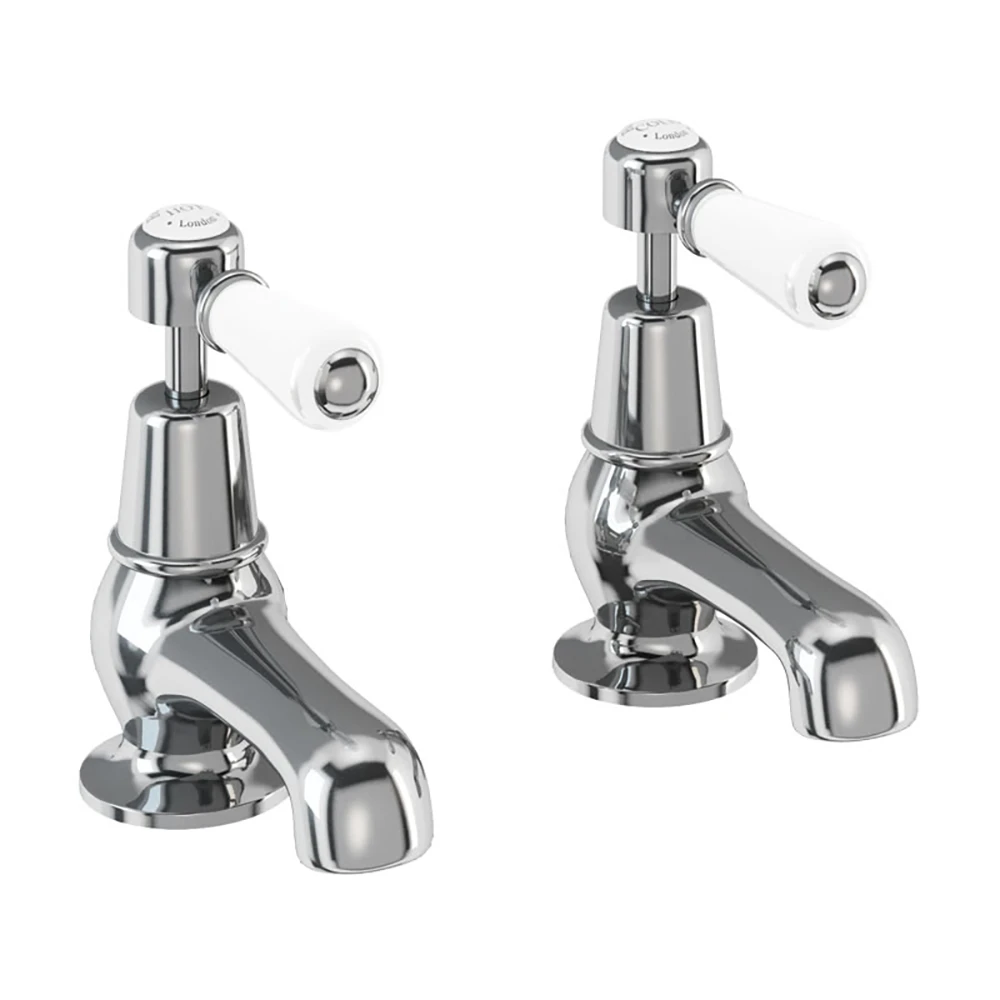 Perfectly sized for a smaller bathroom or cloakroom basin, the Kensington 3 Inch Basin Pillar Taps from Burlington have bundles of period charm and elegance that makes them a real contender as an alternative to a basin mono mixer. Manuafctured from solid brass, the tap is plated in stunning polished chrome and has white ceramic levers to control the water flow from each spout. The taps are operated with quarter-turn, ceramic disc cartridges that are significantly better than rubber washers that are used in older and cheaper taps and are less likely to leak or degrade over time.