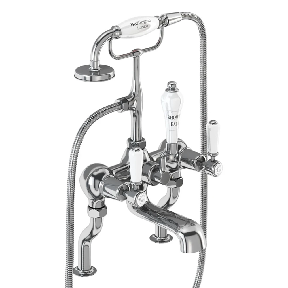 The Kensington Deck Mounted Bath Shower Mixer also comes with Burlington’s signature ‘S’ adjuster, which allows you to position the telephone handset over the bath to ensure every last drop falls into the tub – not onto the tap ledge. This reduces potential mould and water ingress at the perimeter of the bath. You can install your Bath Shower Mixer with or without this feature.