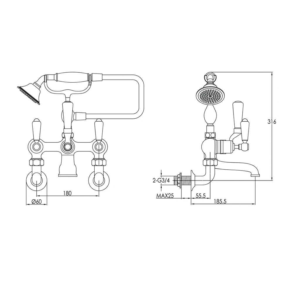 - Traditional ceramic telephone shower handset