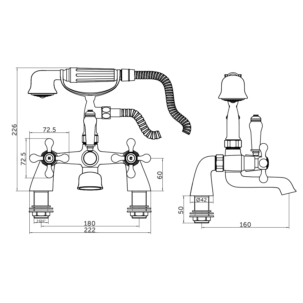 The Butler & Rose Carlton bath shower mixer includes a matching single function shower handset and holder to give you that perfect bathing and showering experience. The traditional detailing on the tap and shower handset is stunning and will really stand out in your period style bathroom.
