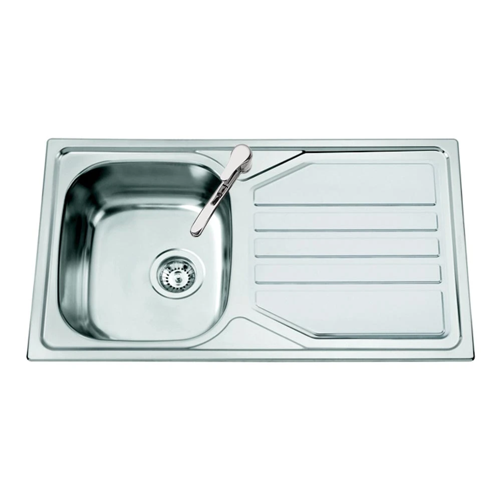 The Okio offers a single bowl and side drainer with a reversible 2 tap hole option, and this allows you to fit the sink with the bowl to left or to the right, whichever you choose. The top mount installation is also suitable for all types of work units, including laminated chipboard.