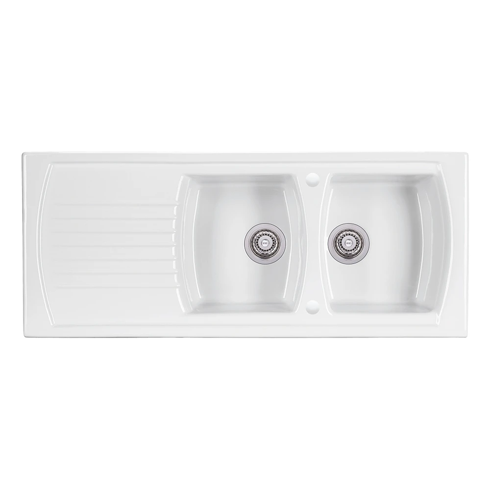 Please note: This ceramic sink may have a tolerance of +/-2% on the specified measurements. This is due to the manufacturing process. As ceramic is a natural material, once it has been fired in the kiln it can expand or contract ever so slightly causing slight fluctuations to the measurements stated above and in the spec box. For this reason, we strongly recommend that you wait until you have received your sink and can measure it for templating purposes before making any cuts in your worktop. If you would like more information, please feel free to contact our sales team here via live chat or email