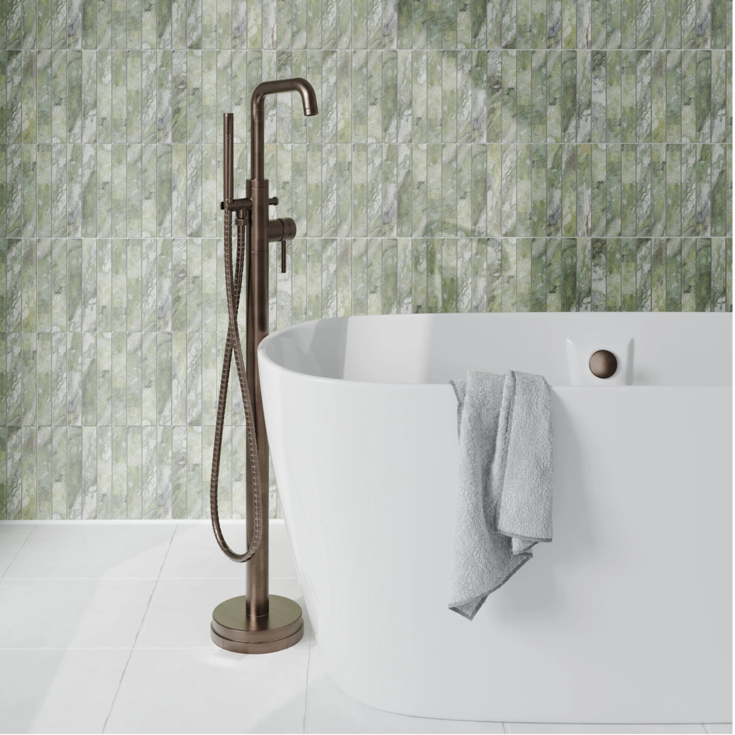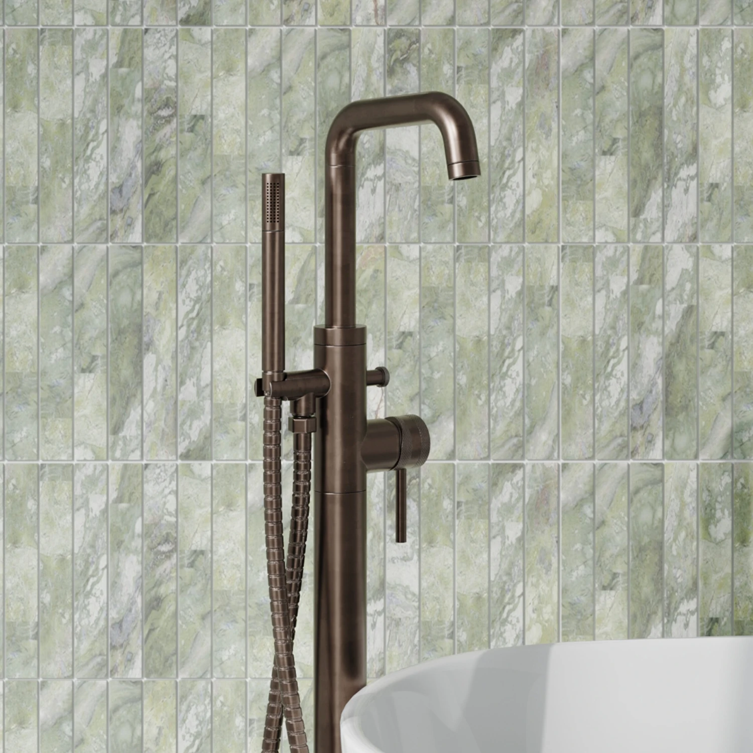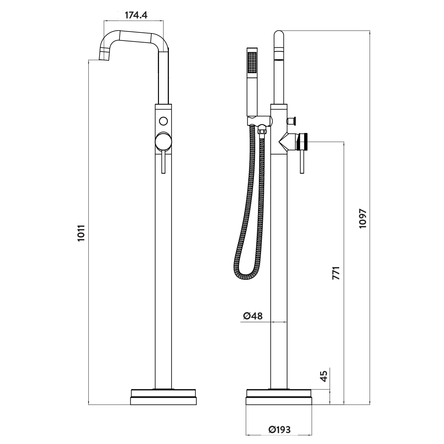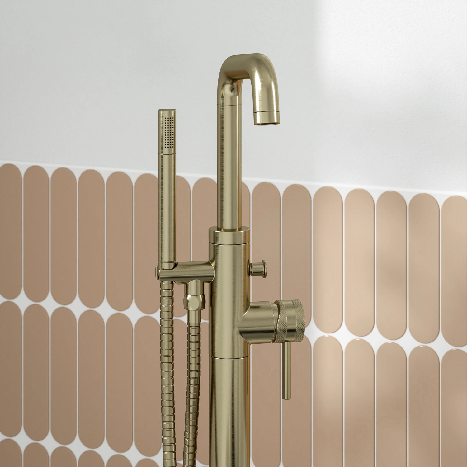 - Modern freestanding bath shower mixer available in 5 striking finishes: Chrome, Matt Black, Brushed Brass, Gunmetal or Brushed Bronze