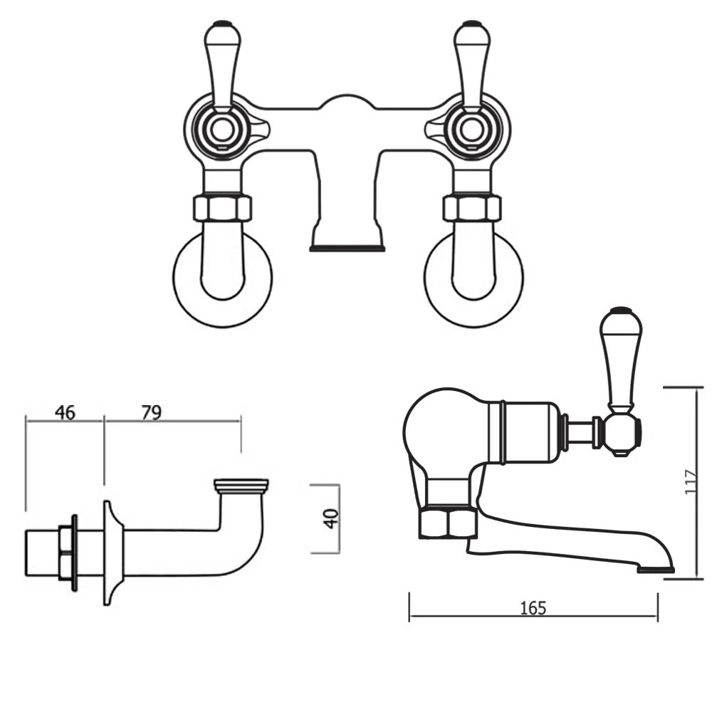 The Crosswater Belgravia Lever Wall Mounted Bath Filler is a classically inspired piece that features sculpted exposed valves, curved bath spout, twin levers beautifully glazed in ceramic, and wall legs with cover plates for a final touch.