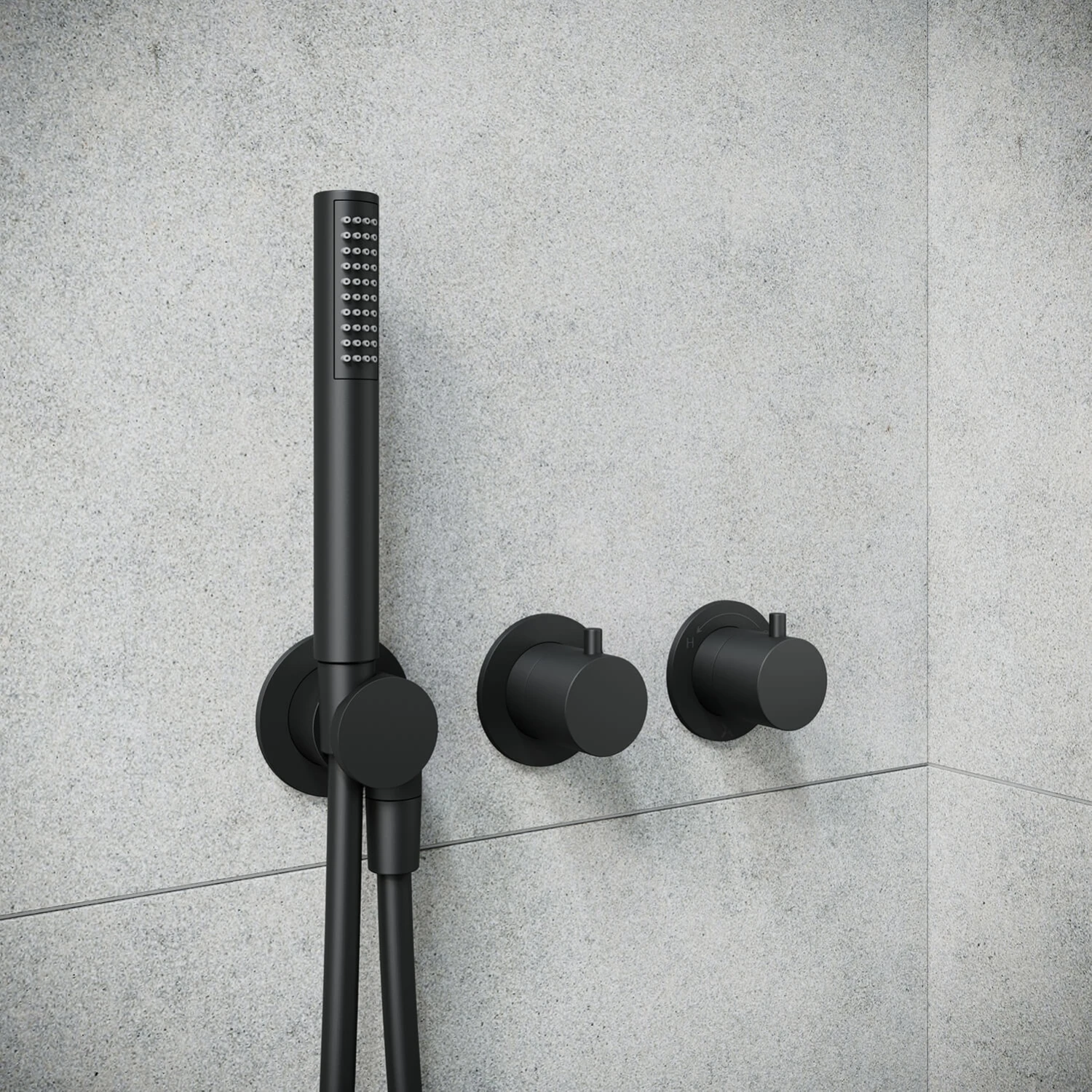 - Comes with: 3 outlet concealed thermostatic shower valve, shower handset with easy clean nozzles, a smooth shower hose and shower handset holder
