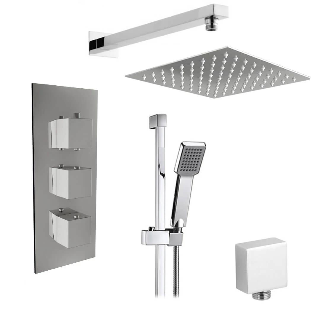 The square outlet elbow from Drench is a chrome-plated outlet elbow in a square, Twist design. Used to connect water pipework inside your wall to a shower hose, it is normally required with shower rail kits.