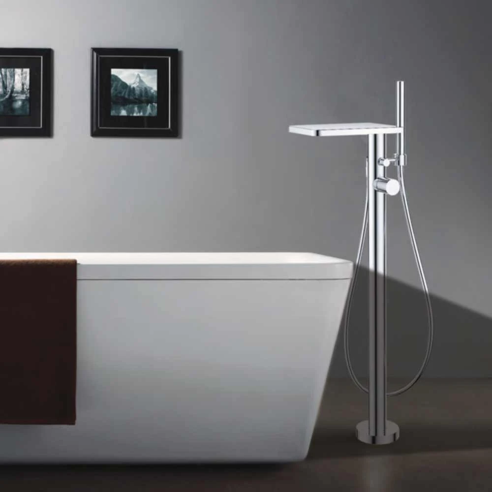 Visually innovative and intuitively functional, the Annecy Free Standing Waterfall Bath Shower Mixer Tap has a sleek shelf design that conceals the waterfall spout, while providing extra storage space to keep your bathroom organised. It comes complete with a single function handset and flexible hose.