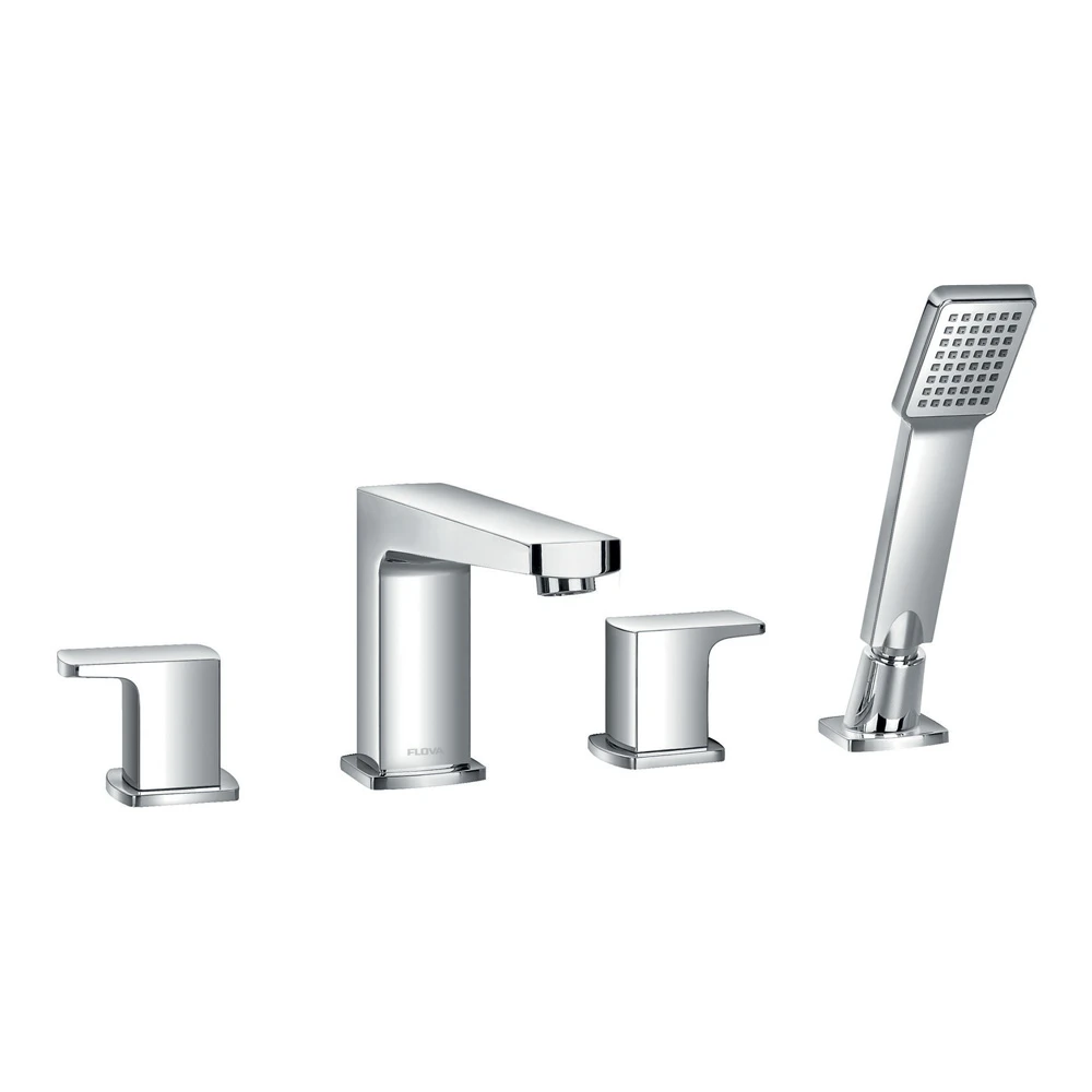 The Flova Dekka 4 Piece Bath Mixer Set features soft geometric forms. With a bold square design contrasting with subtle curves to the underside of the spout and levers, this bath shower mixer will add functionality and style to your bathroom.