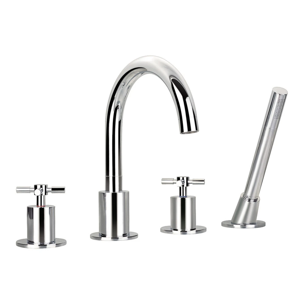 - 4 piece set: 2 crosshead handles, swan-neck spout & handset