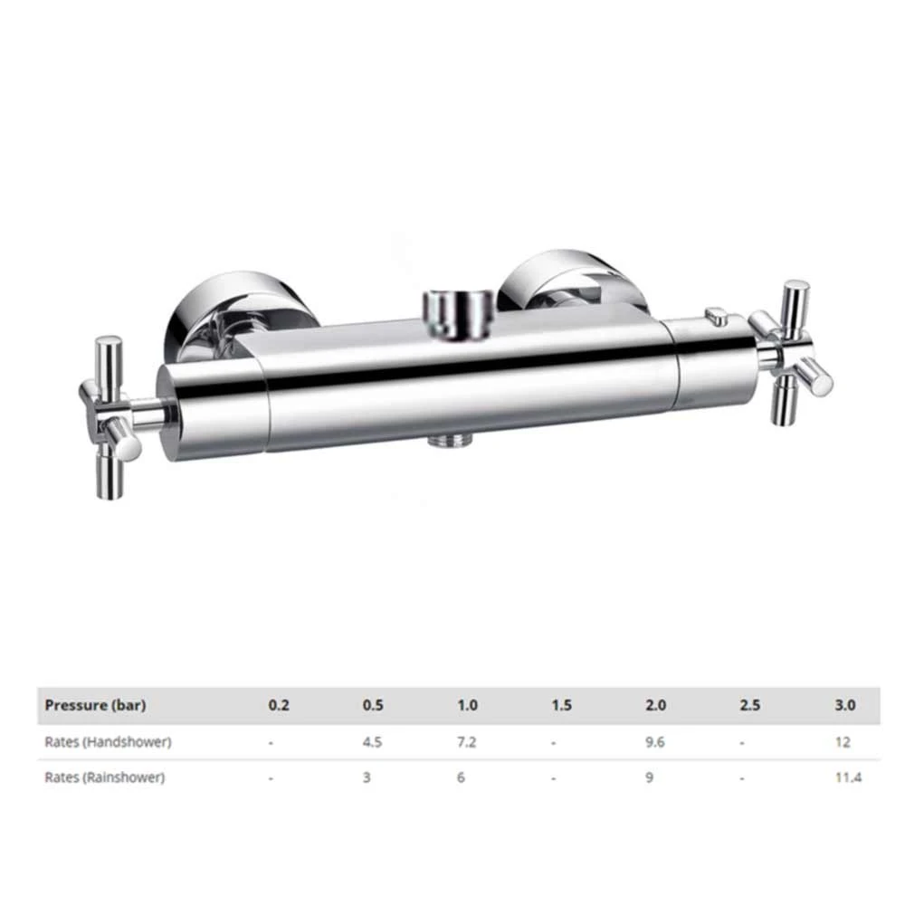 - Thermostatic temperature control with anti-scalding safety stop & pre-setting mode