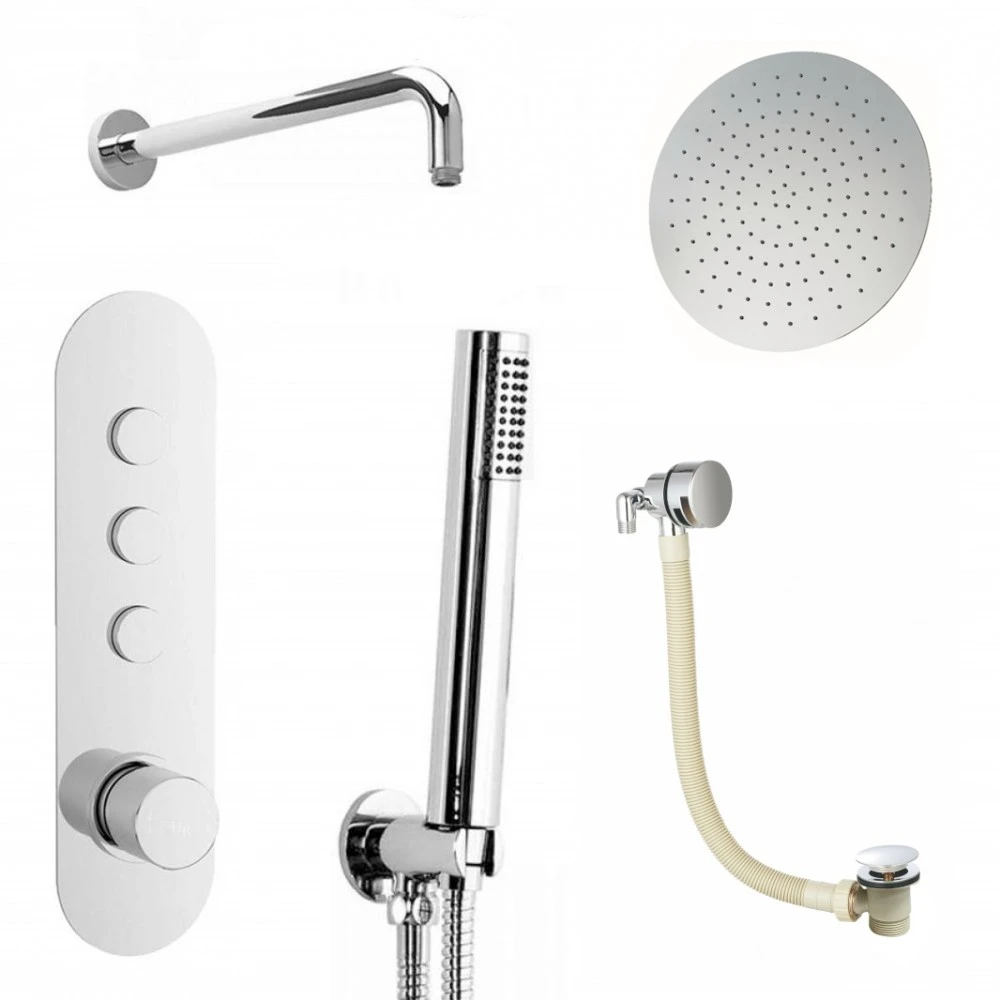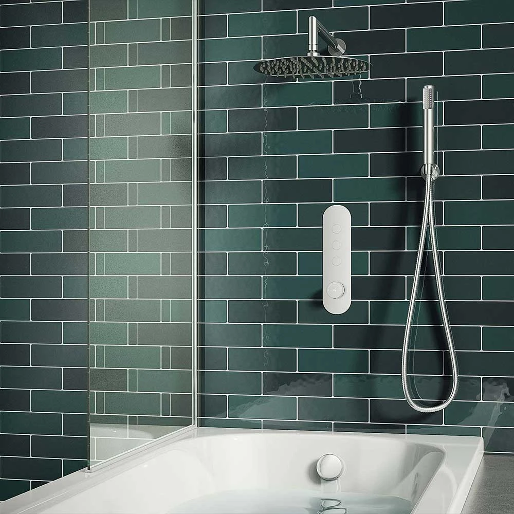 Boasting a contemporary chrome finish and minimalist design, the Gabrielle Concealed Thermostatic Shower Valve, Fixed Shower Head, Handset & Overflow Bath Filler is a sublime cherry on the luxurious bathroom cake we all dream of! Switch your outlets on/off at the simple click of a button – whether you want them on solo or all at once, then use the dial to adjust the temperature however you please. Thermostatic safety technology regulates the temperature and prevents accidental scalding, whilst the convenient shower handset offers an excellent alternative for hosing down the pets or kids.