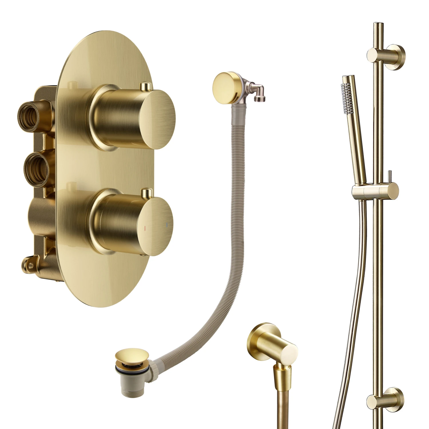 - Kit includes: brass shower handset with easy clean nozzles, 1.5m PVC shower hose & adjustable brass handset holder