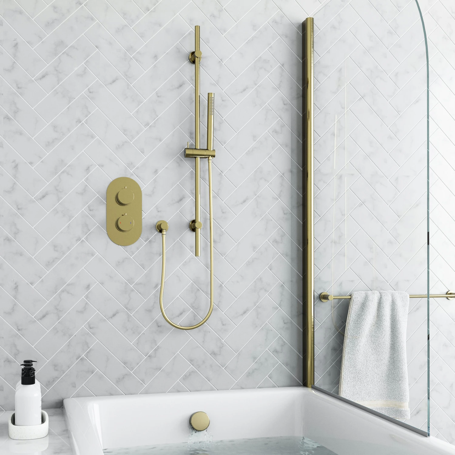 Harbour Clarity Brushed Brass Slide Rail Shower Kit with Shower Handset & Hose