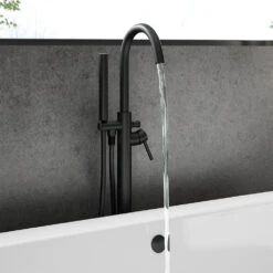 Add a splash of true contemporary luxury to your bathroom with the Harbour Clarity Matt Black floorstanding bath shower mixer, shower kit, and easy plumb installation kit. This striking bathroom tap boasts sturdy solid brass construction, a sleek modern finish, and ceramic disc technology to prevent unwanted dripping.