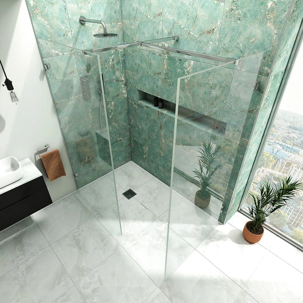 - Includes modern minimalistic support shower arm – 1000mm in length and can be cut down to size