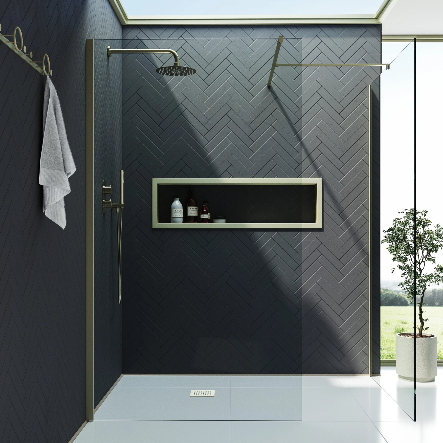 - Walk-in shower tray, shower waste and shower kit sold separately