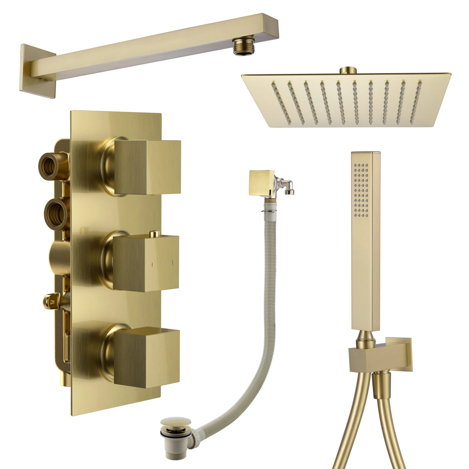 Harbour Status Brushed Brass 3 Outlet Thermostatic Concealed Shower Valve