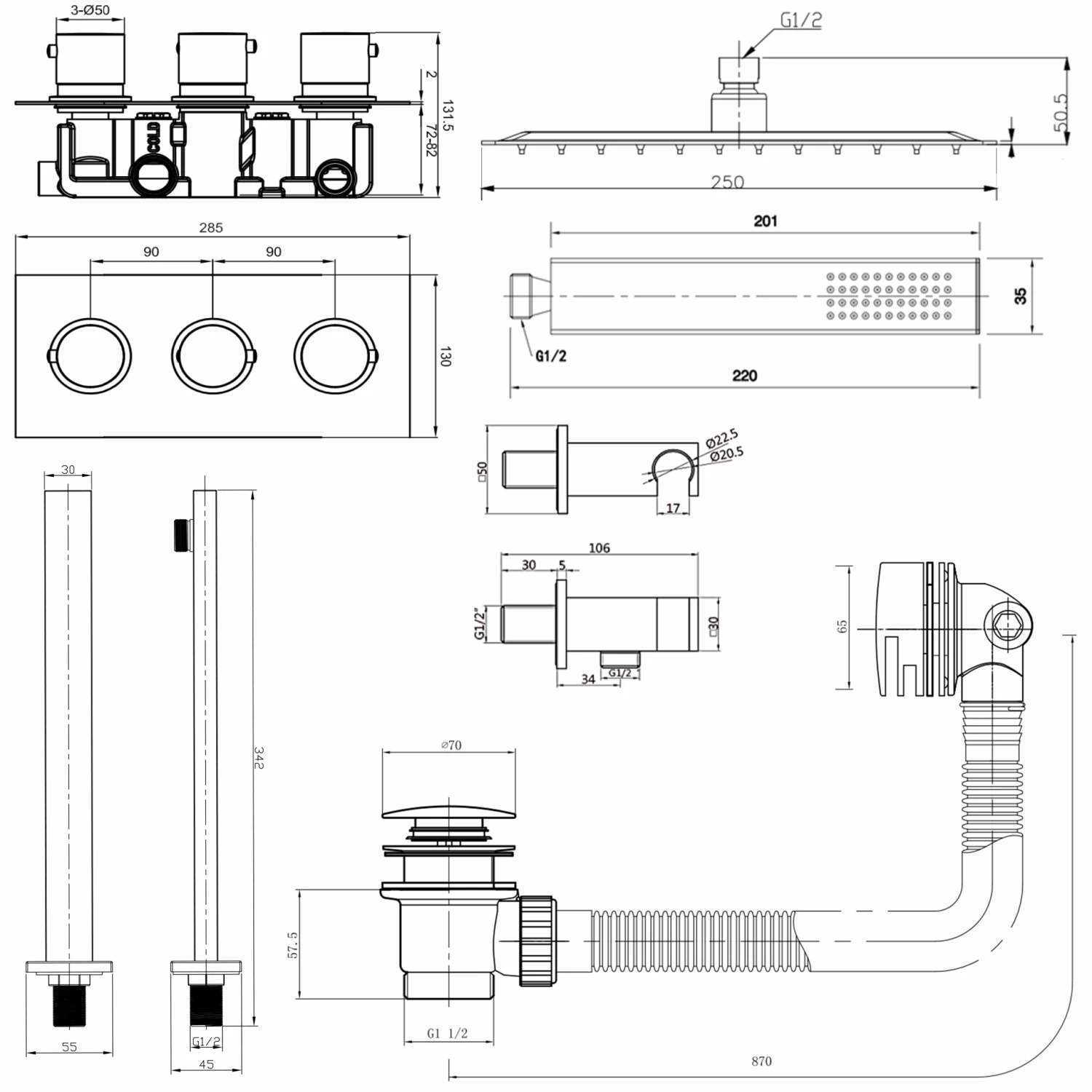 - Kit includes: shower handset with easy clean nozzles, 1.5m PVC shower hose & wall outlet elbow with integrated shower handset