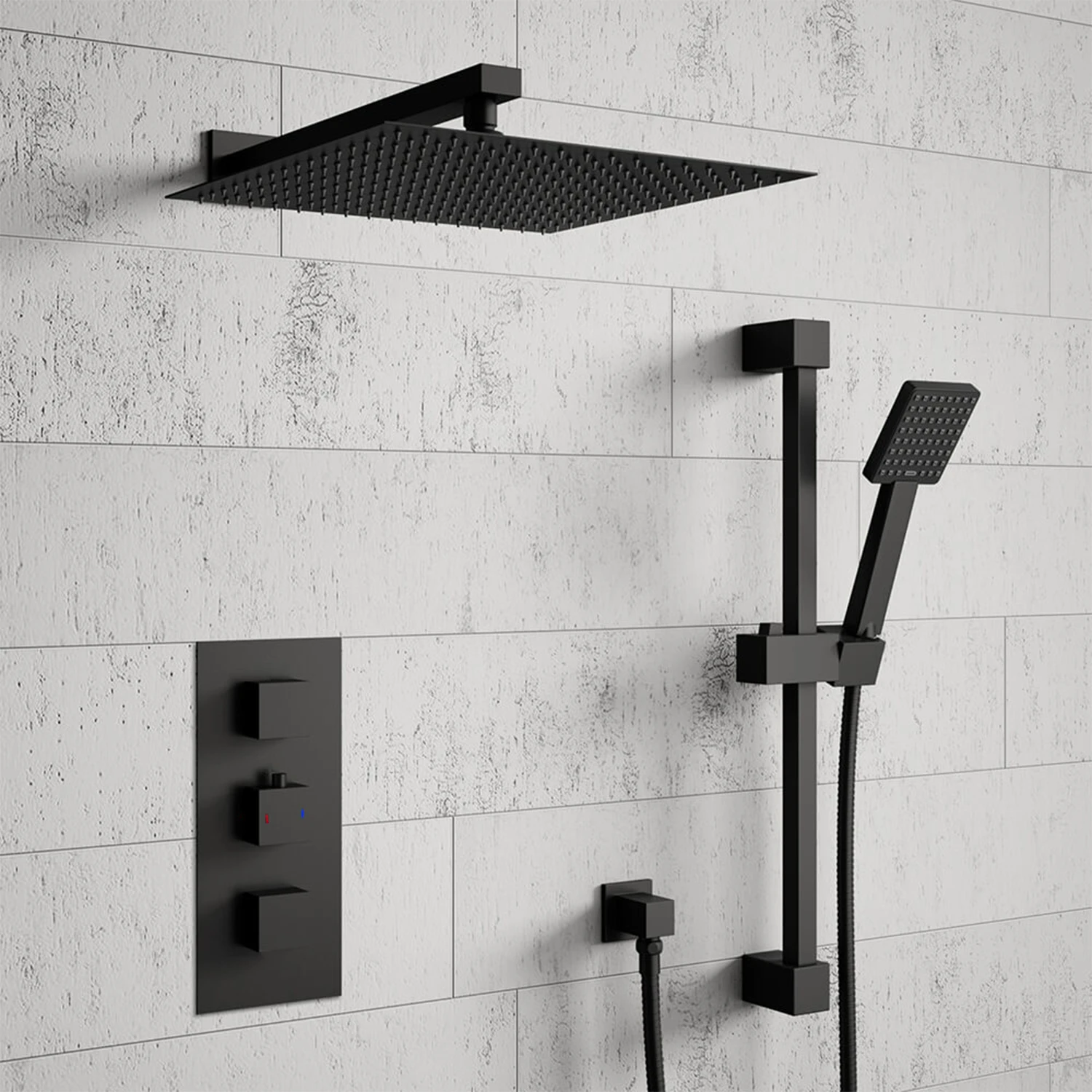 Harbour Status Matt Black Stainless Steel Square Shower Head 200mm or 300mm