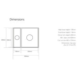 Caple Ettra 1.5 Bowl Undermount White Ceramic Kitchen Sink – 545 X 440mm