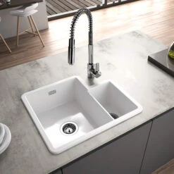 Thomas Denby Metro 1 Bowl And Half Bowl Inset Or Undermount Gloss White Ceramic Kitchen Sink