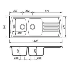 Clearwater Sonnet White Ceramic Double Bowl Sink With Reversible Drainer – 1200 X 500mm