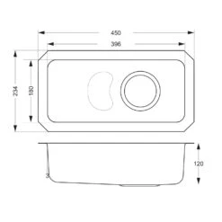 Vellamo Horizon 0.5 Bowl Undermount Stainless Steel Kitchen Sink & Waste Kit – 234 X 450mm