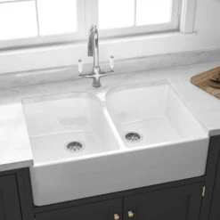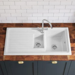 Butler & Rose 1.5 Bowl Ceramic Kitchen Sink And Butler & Rose Victoria Traditional Kitchen Mixer Tap