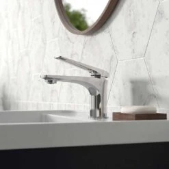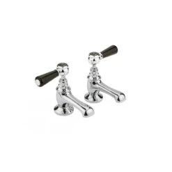 Hudson Reed Black Topaz Lever 3 Tap Hole Basin Mixer With Hexagonal Collars & Pop-up Waste