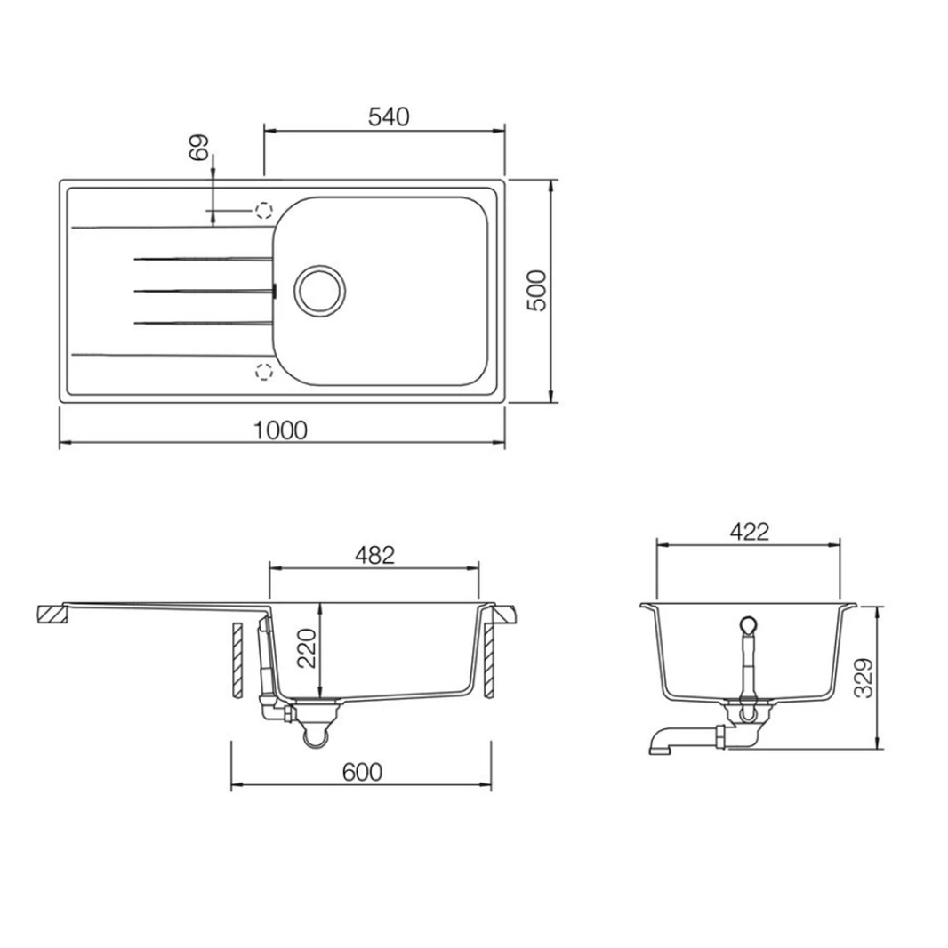 - Partially drilled tap hole on both sides for monobloc kitchen mixer fitting