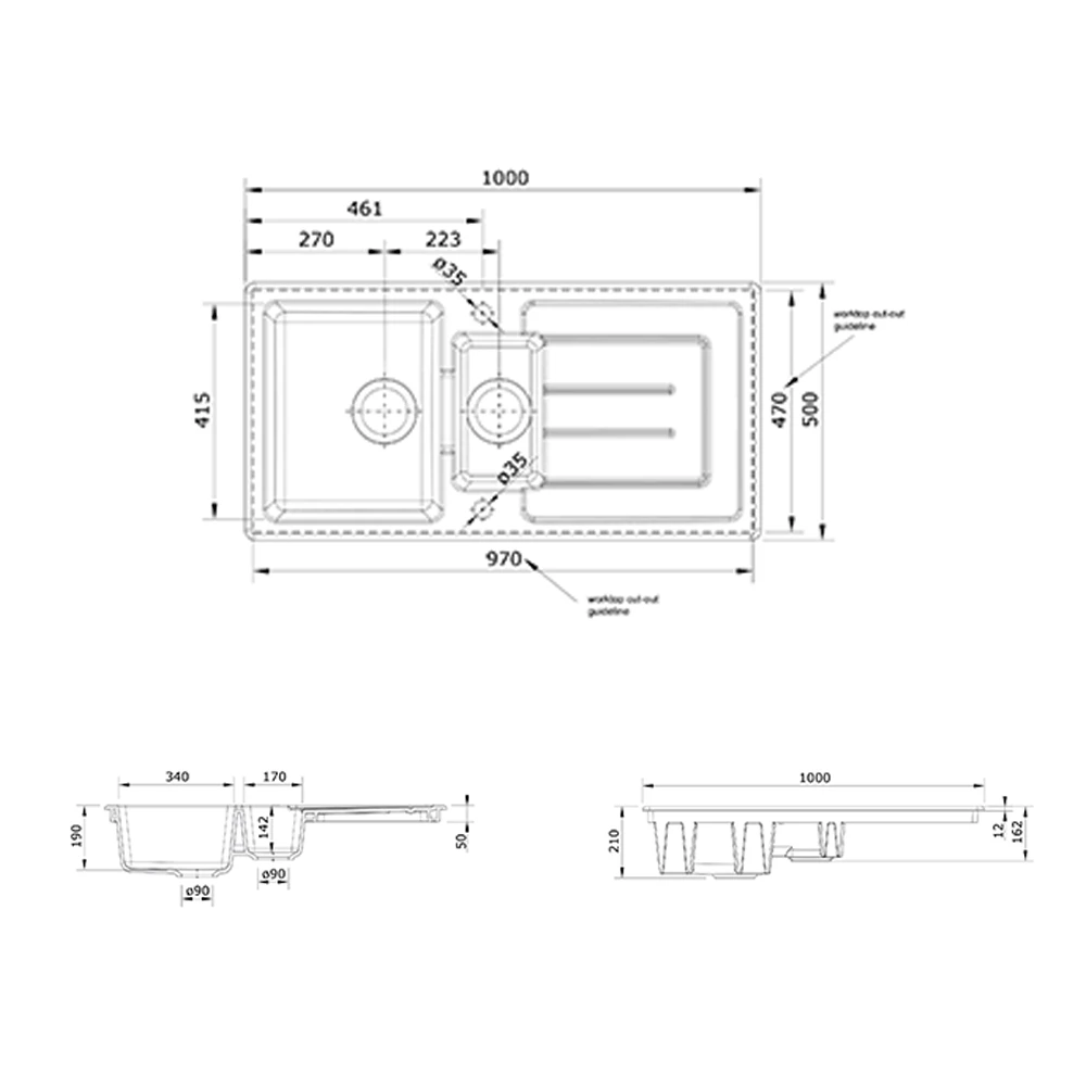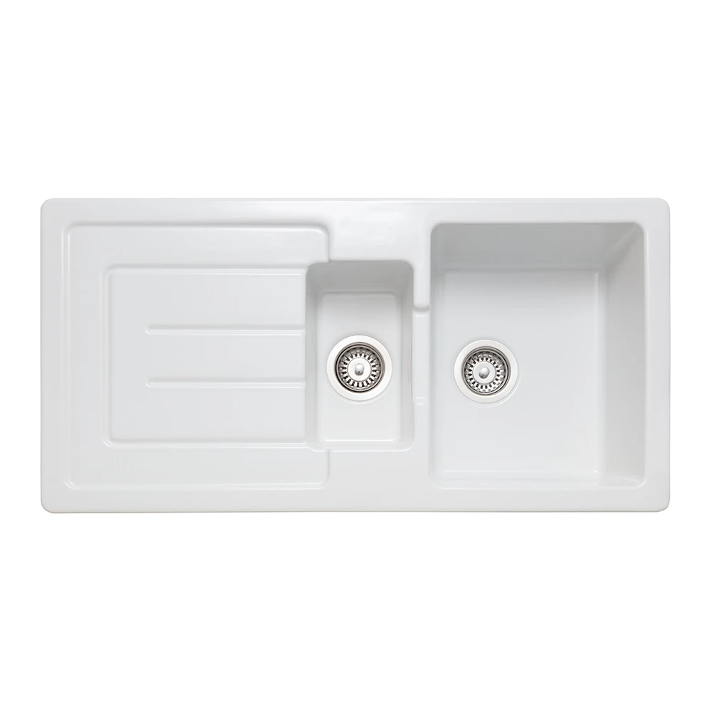 Please note: This ceramic sink may have a tolerance of +/-3mm on the specified measurements. This is due to the manufacturing process. As ceramic is a natural material, once it has been fired in the kiln it can expand or contract ever so slightly causing slight fluctuations to the measurements stated above and in the spec box. For this reason, we strongly recommend that you wait until you have received your sink and can measure it for templating purposes before making any cuts in your worktop. If you would like more information, please feel free to contact our sales team here via live chat or email