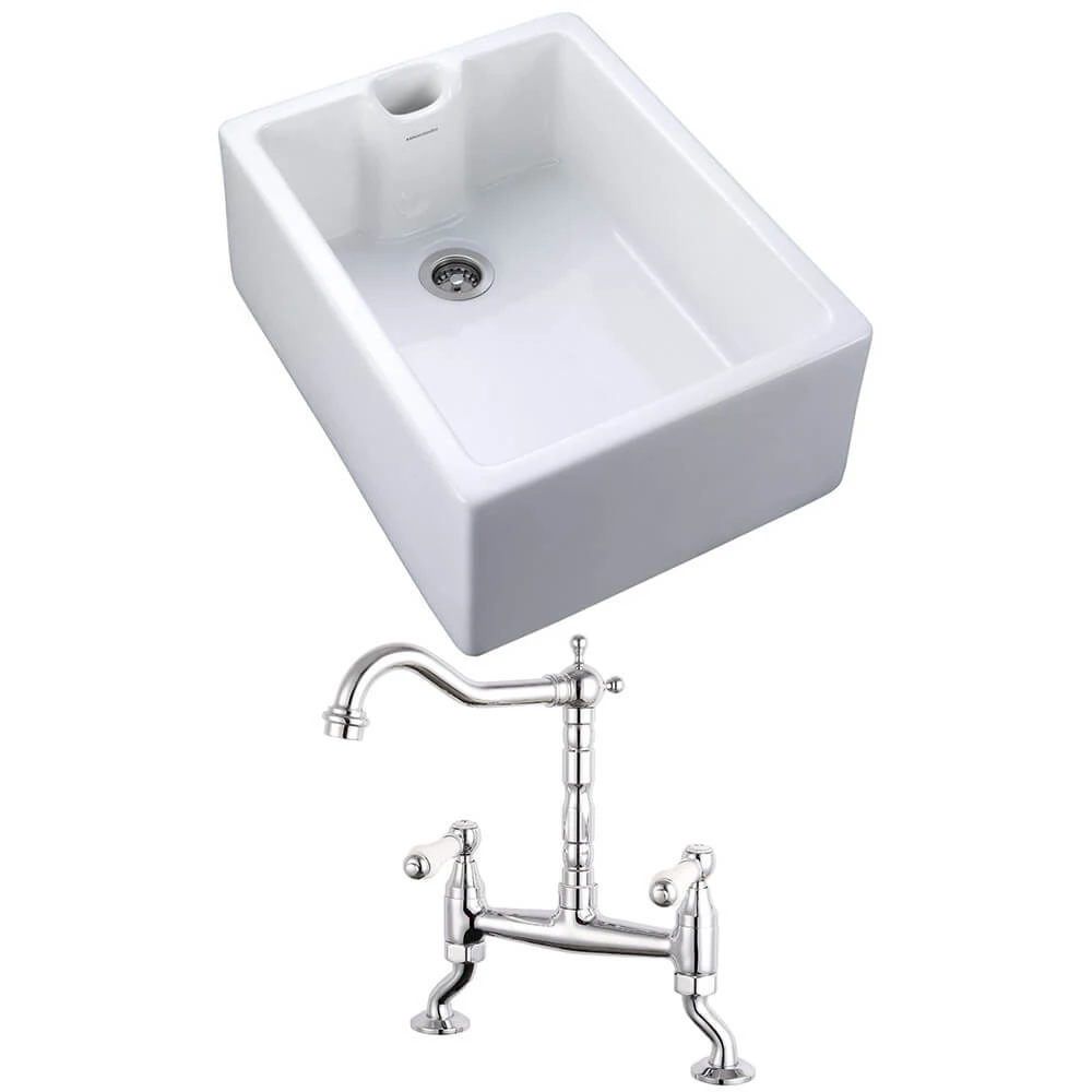 Rangemaster Classic 1 Bowl Belfast White Fireclay Ceramic Sink & Waste