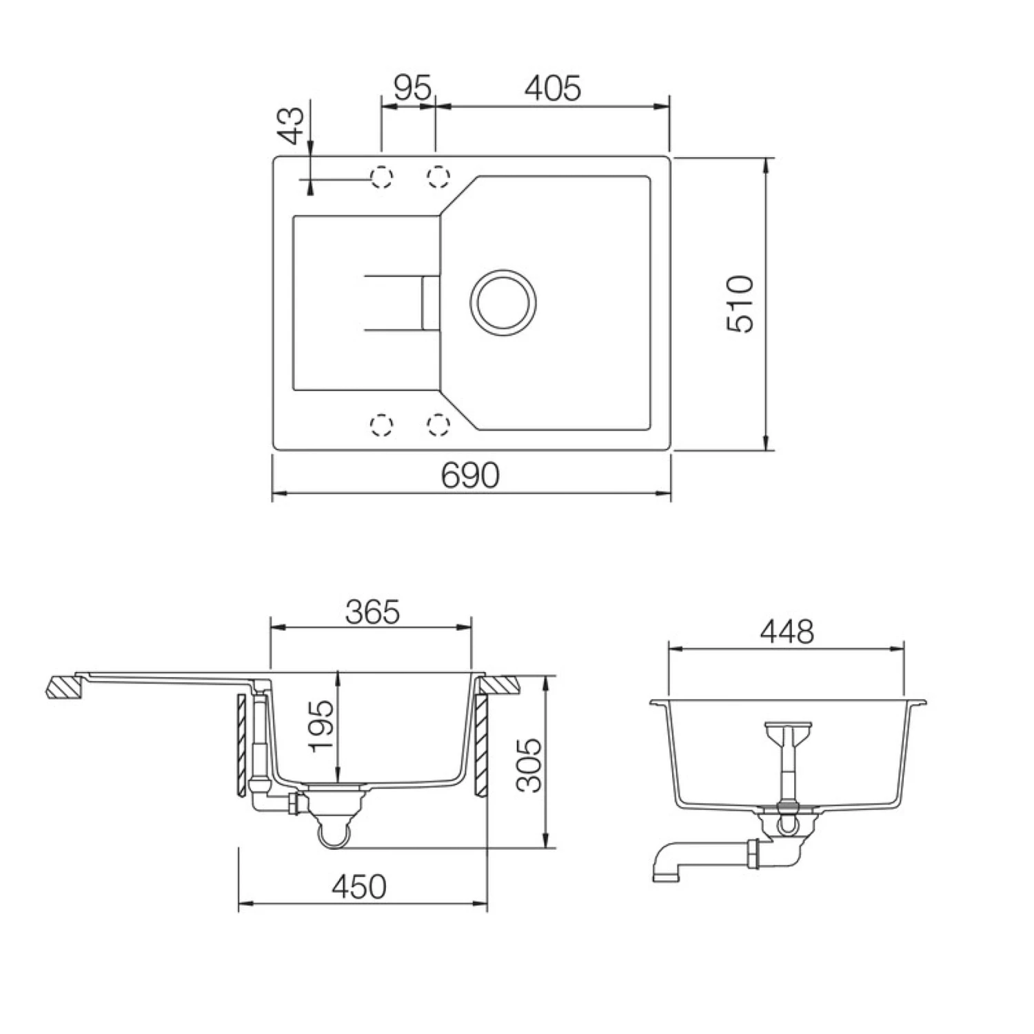 - Pre-scored tap hole on each underside of the sink