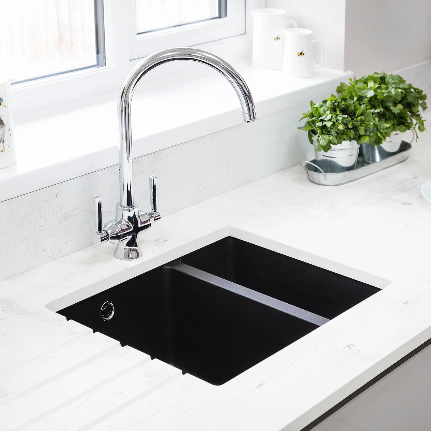 That finish alone will leave you in awe, especially once it has been setup against a backdrop that consists of the rest of the fixtures in an exquisitely designed modern kitchen. Clean and seamless, its angles and lines leave you with so much flexibility that it would definitely blend in well with everything else you place around it. Go under-mounted for a sleek and seamless worksurface, and enjoy all the advantages of a durable 1.5 bowl sink. While the main bowl gives you plenty of space for washing oversized cooking pans, the additional half bowl is handy when you need to use your sink for two tasks at the same time, being perfect for the fitting of an environmentally friendly waste disposal unit. The Paragon undermount sink boasts a modern geometric design and it matches ideally with composite countertops, fitting within a standard 600mm-wide cabinet.