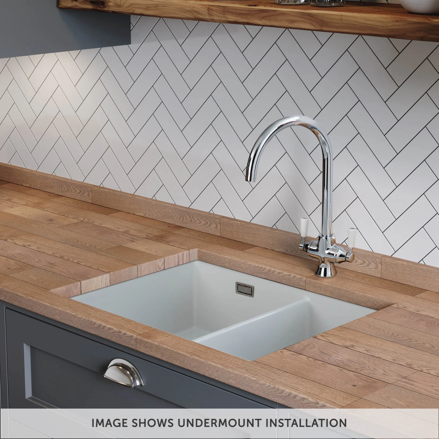 Please note: This ceramic sink may have a tolerance of +/-3% on the specified measurements. This is due to the manufacturing process. As ceramic is a natural material, once it has been fired in the kiln it can expand or contract ever so slightly causing slight fluctuations to the measurements stated above and in the spec box. For this reason, we strongly recommend that you wait until you have received your sink and can measure it for templating purposes before making any cuts in your worktop. If you would like more information, please feel free to contact our sales team here via live chat or email