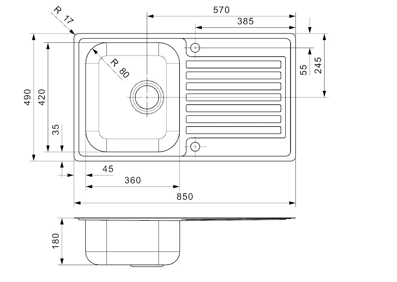 - Reversible fitting (drainer can be on the left or right)