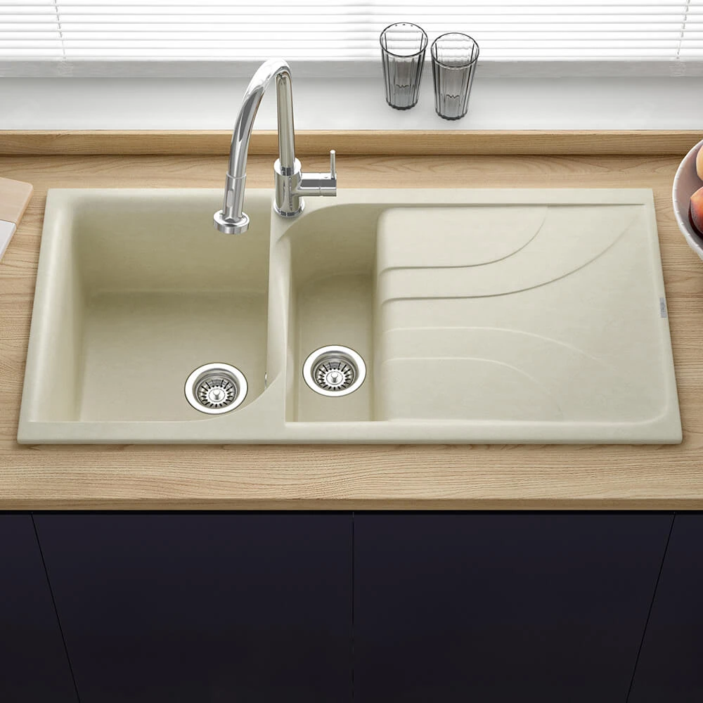 Reginox Ego 475 1.5 Bowl Cream Granite Composite Kitchen Sink with Reversible Drainer & Waste Kit