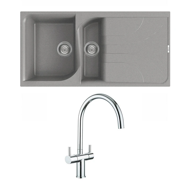 Reginox Ego Titanium Grey Granite Composite 1.5 Bowl Kitchen Sink & Vellamo Caspian Mono Mixer Tap