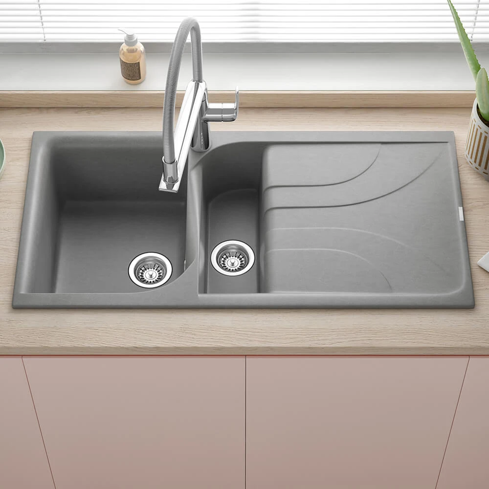Reginox Ego 475 1.5 Bowl Titanium Grey Granite Composite Kitchen Sink with Reversible Drainer & Waste Kit