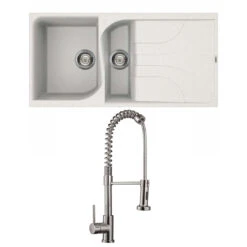 Reginox Ego 475 1.5 Bowl White Granite Composite Kitchen Sink with Reversible Drainer & Waste Kit