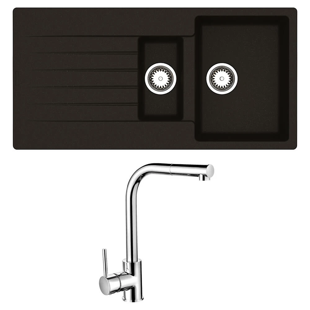 Reginox Harlem 1.5 Bowl Black Silvery Granite Composite Sink & Waste Kit
